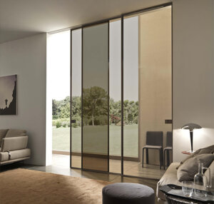 porte in vetro, porte in alluminio, porte vetrate, vetrate scorrevoli, vetri satinati, pareti mobili, porta cabina armadio