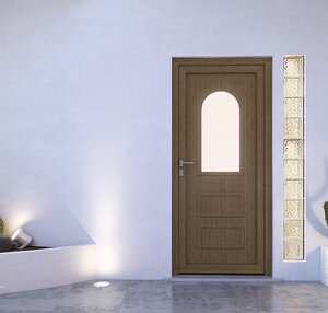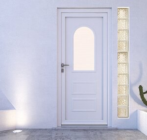 Il portoncino in PVC Nurith può essere realizzato a una o due ante, con svetrature, con pannelli a disegno, con pannelli lisci.